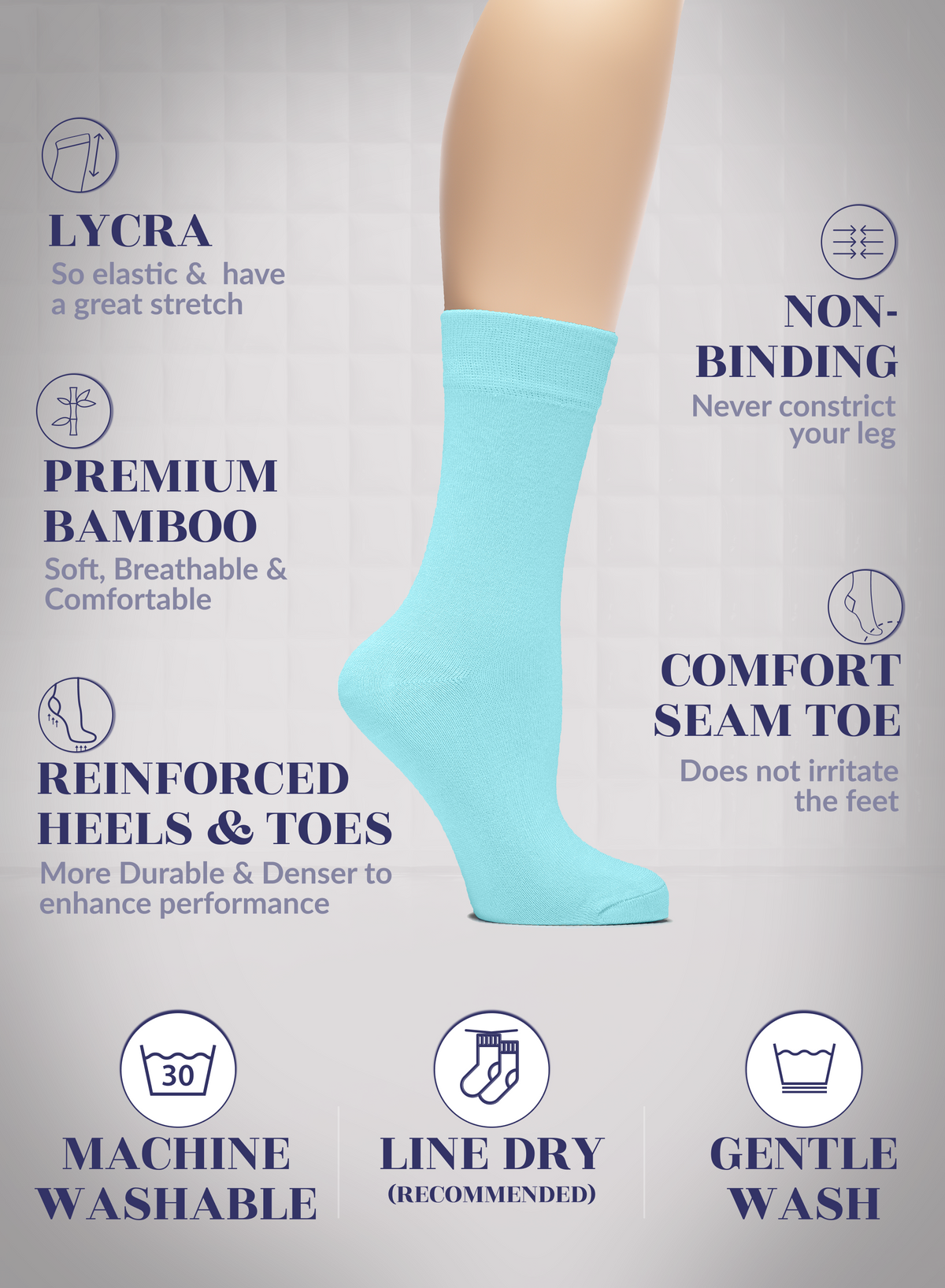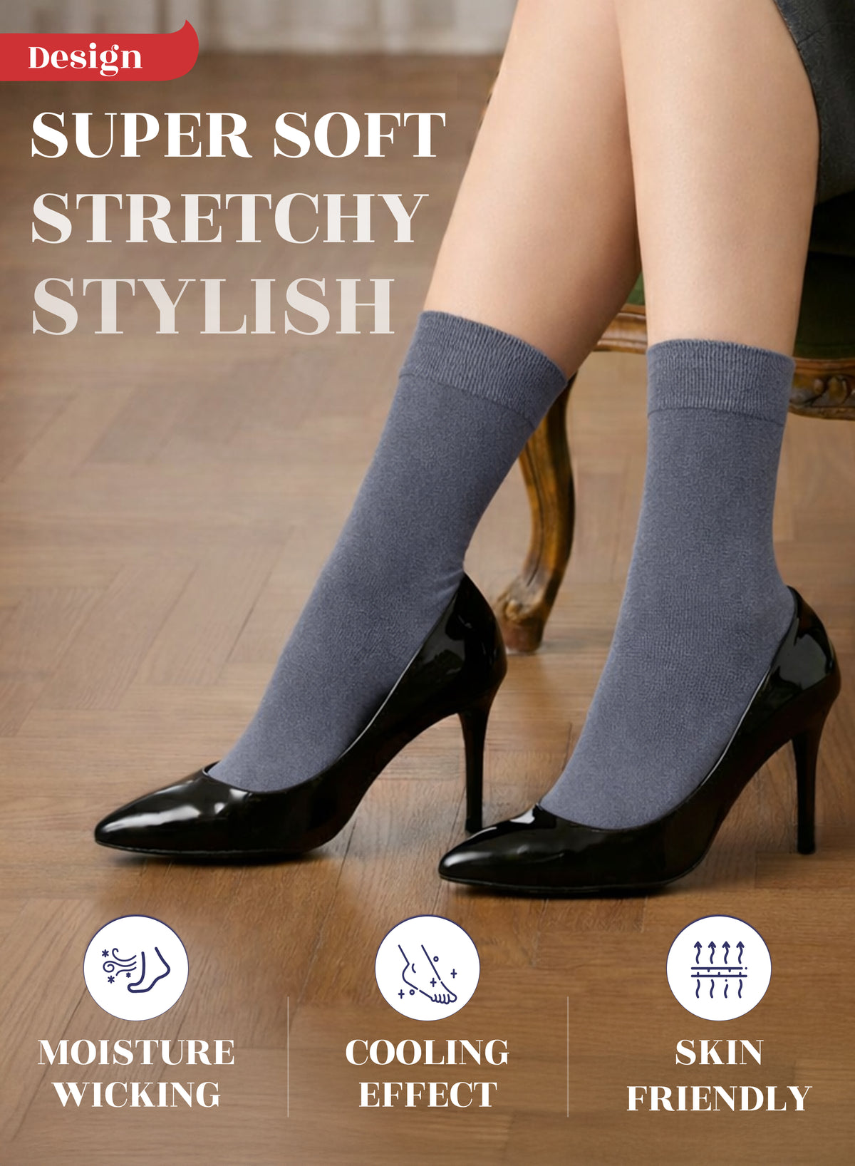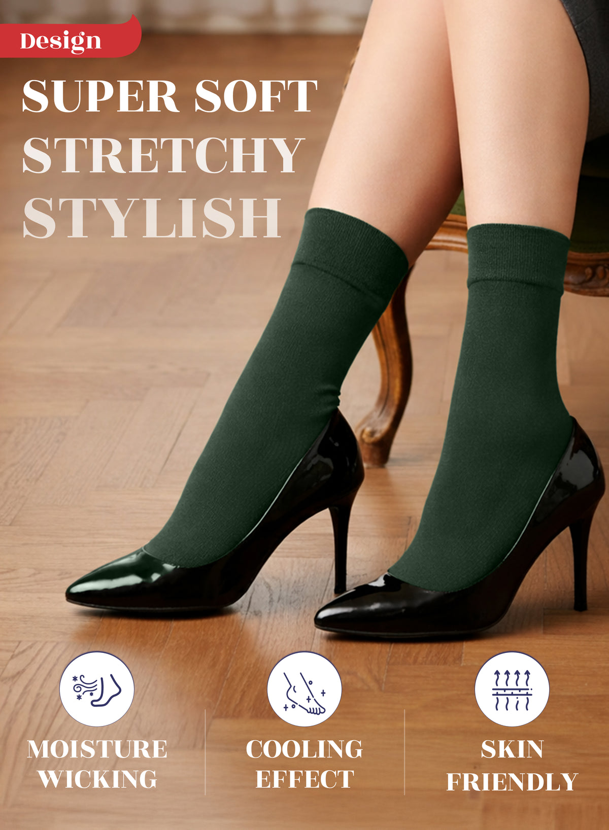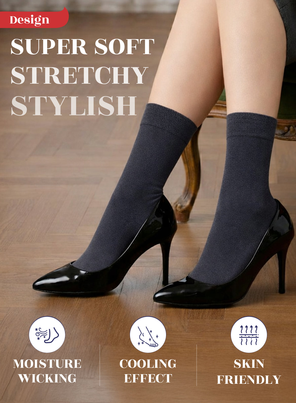 SUPER SOFT, BREATHABLE & COMFORTABLE DESIGN: Thanks to the bamboo, these thin ladies dress socks are extremely soft, breathable and has a cooling effect. They are elastic and have a great stretch. Their improved cuffs hold socks comfortably in place. Reinforced toes and heels make them extremely durable. Our business crew women dress socks have comfort seam toe that do not irritate your feet.
