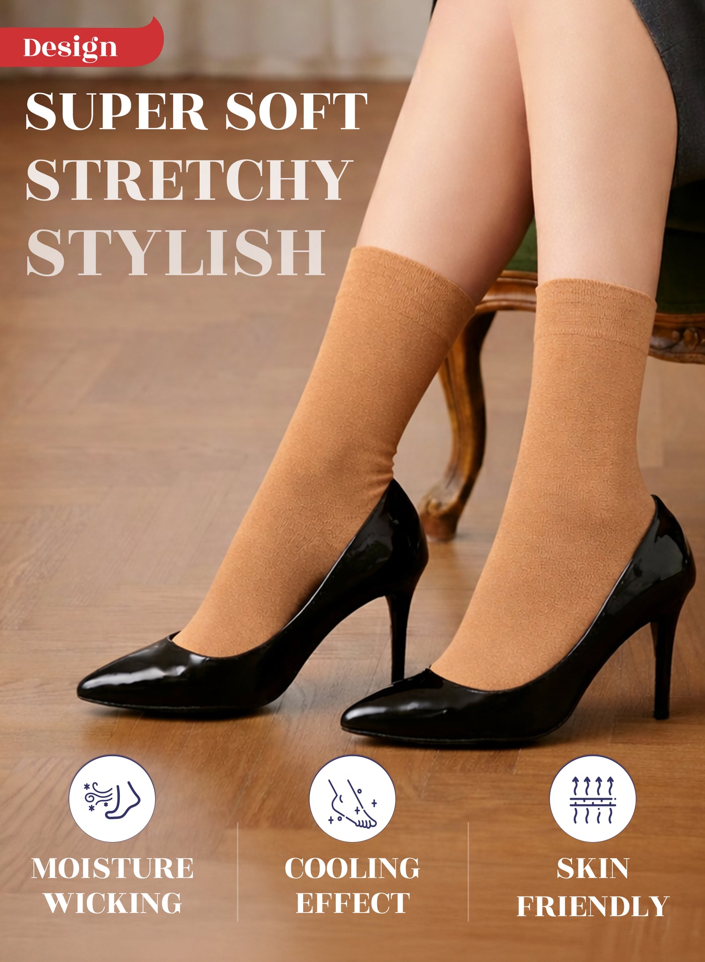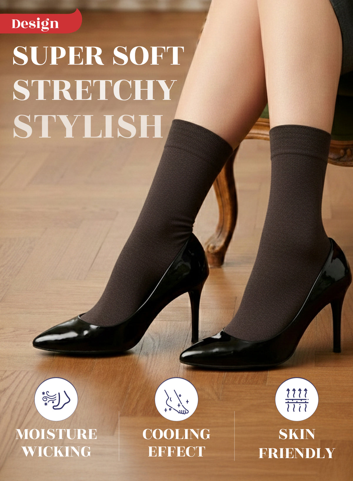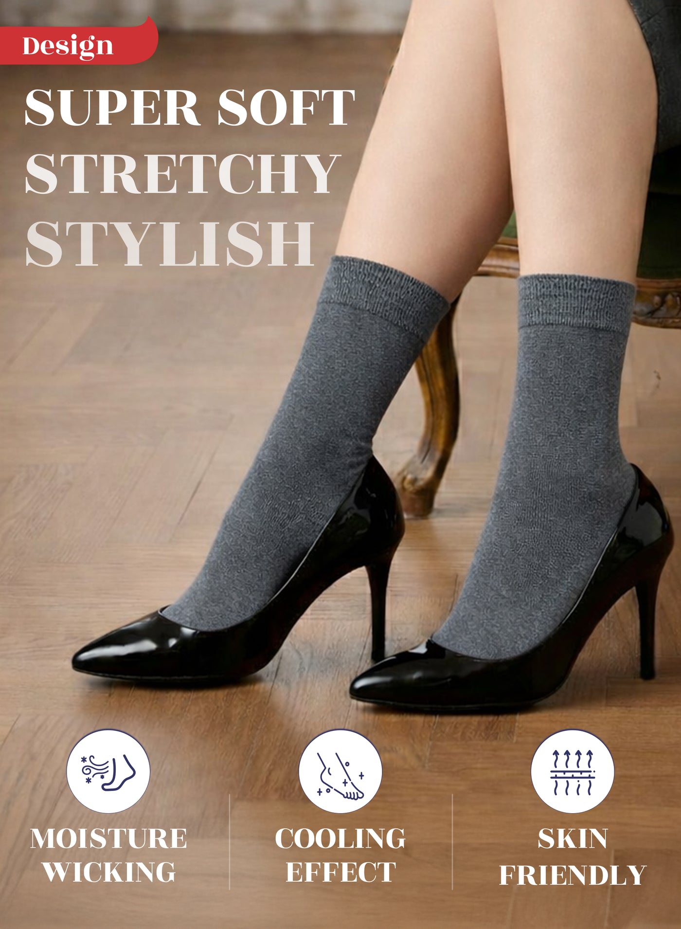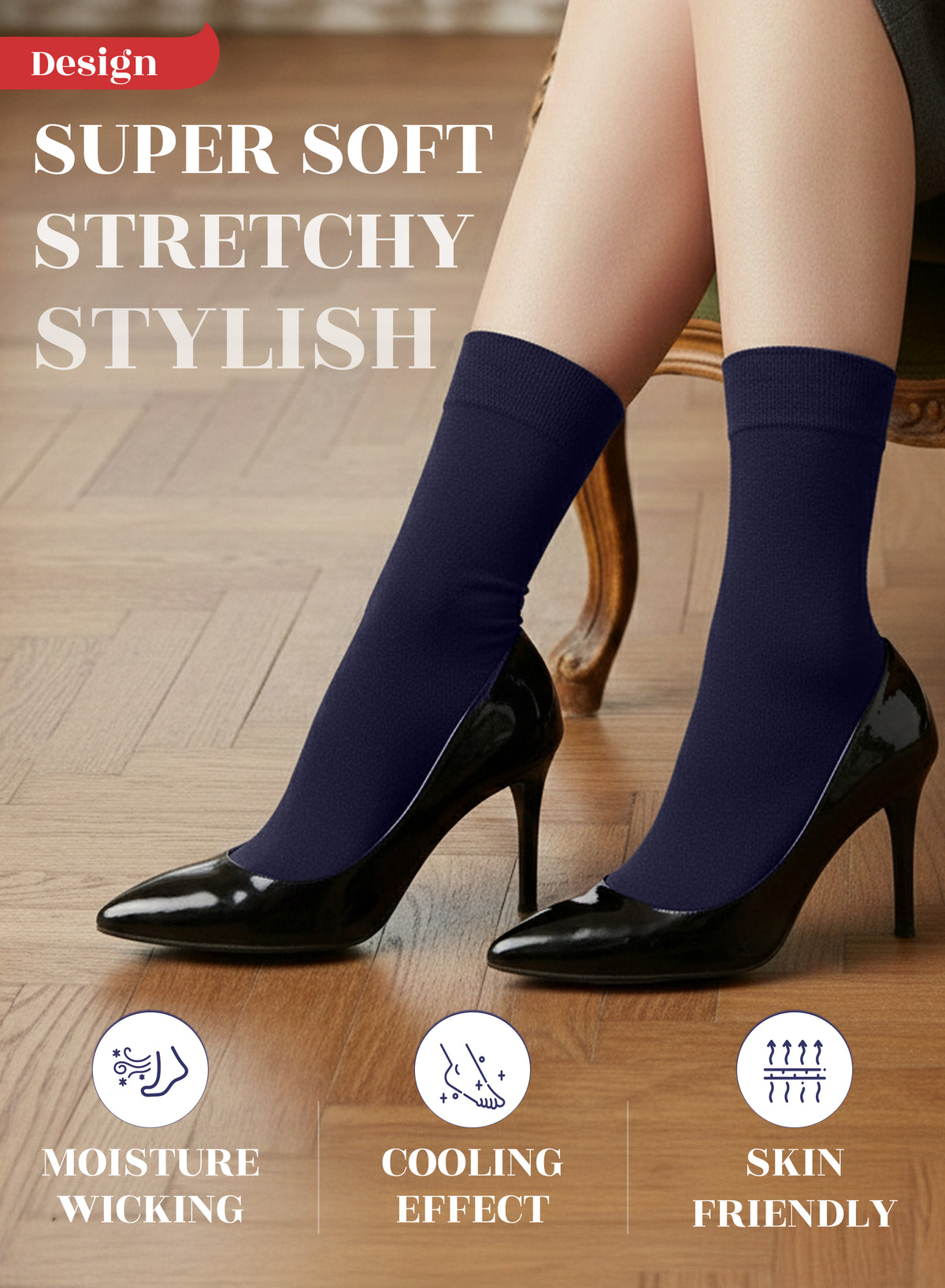 SUPER SOFT, BREATHABLE & COMFORTABLE DESIGN: Thanks to the bamboo, these thin ladies dress socks are extremely soft, breathable and has a cooling effect. They are elastic and have a great stretch. Their improved cuffs hold socks comfortably in place. Reinforced toes and heels make them extremely durable. Our business crew women dress socks have comfort seam toe that do not irritate your feet.