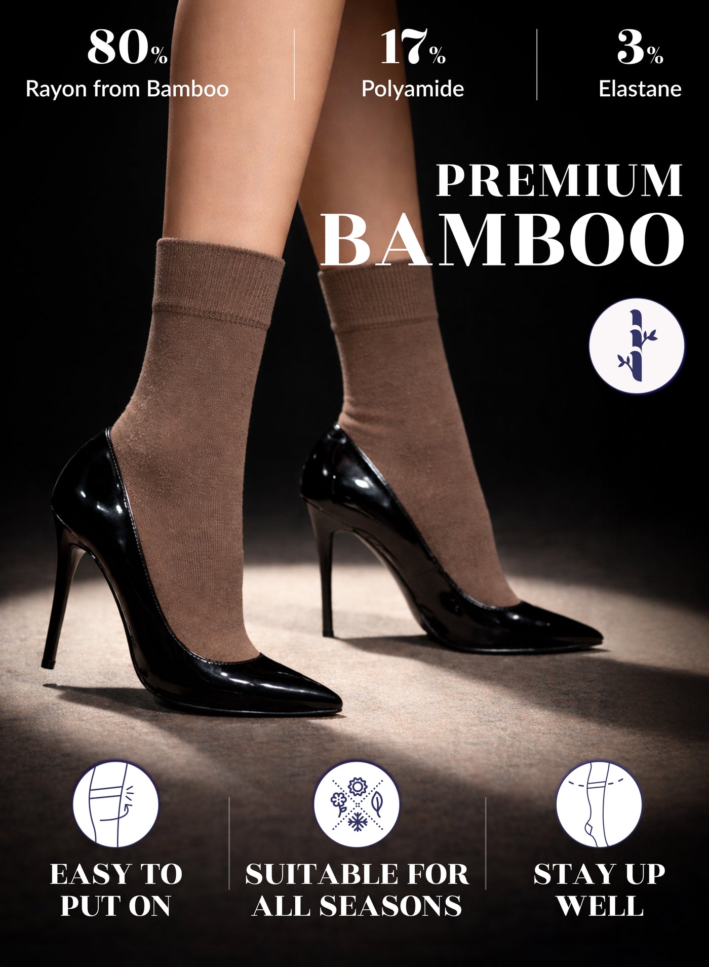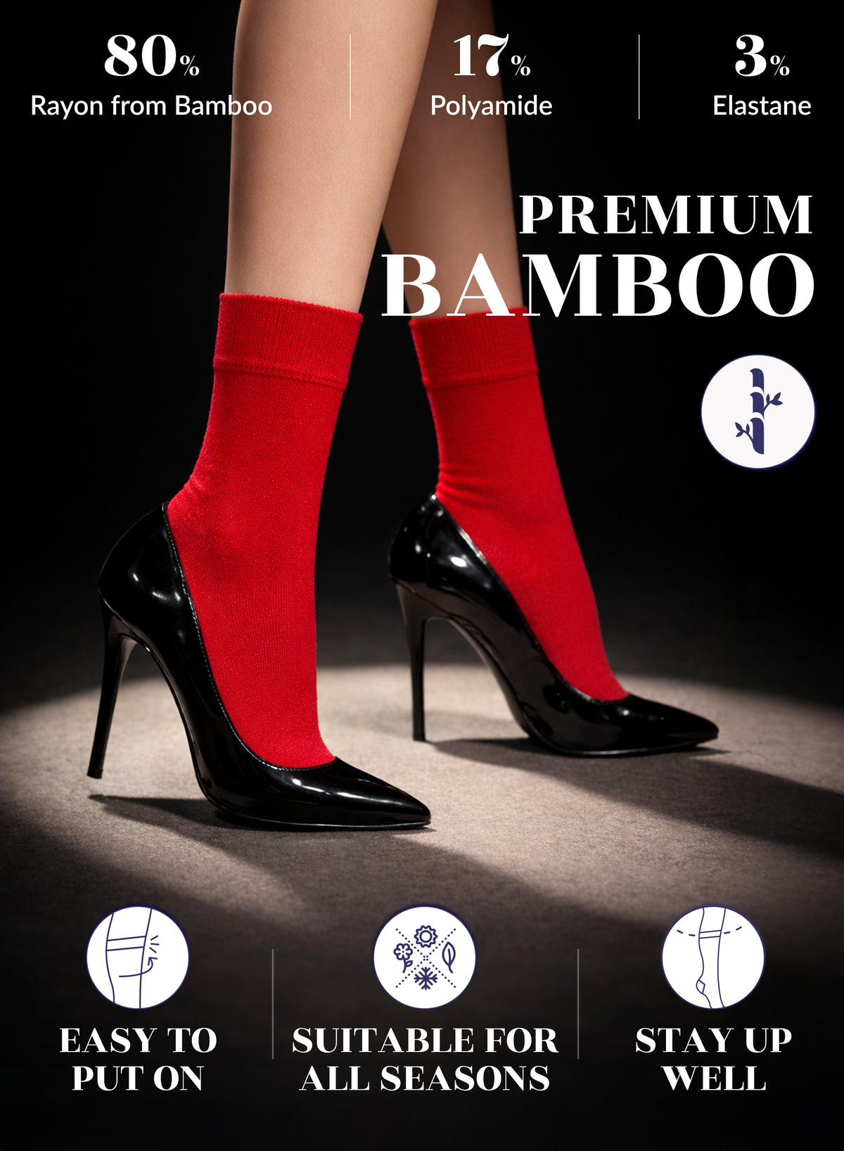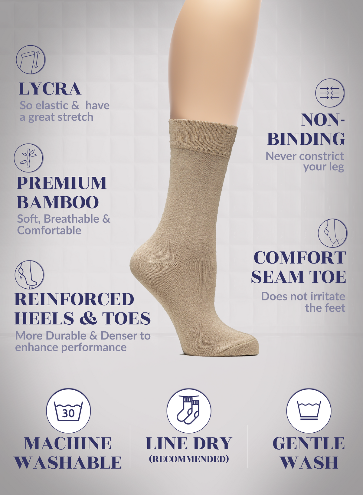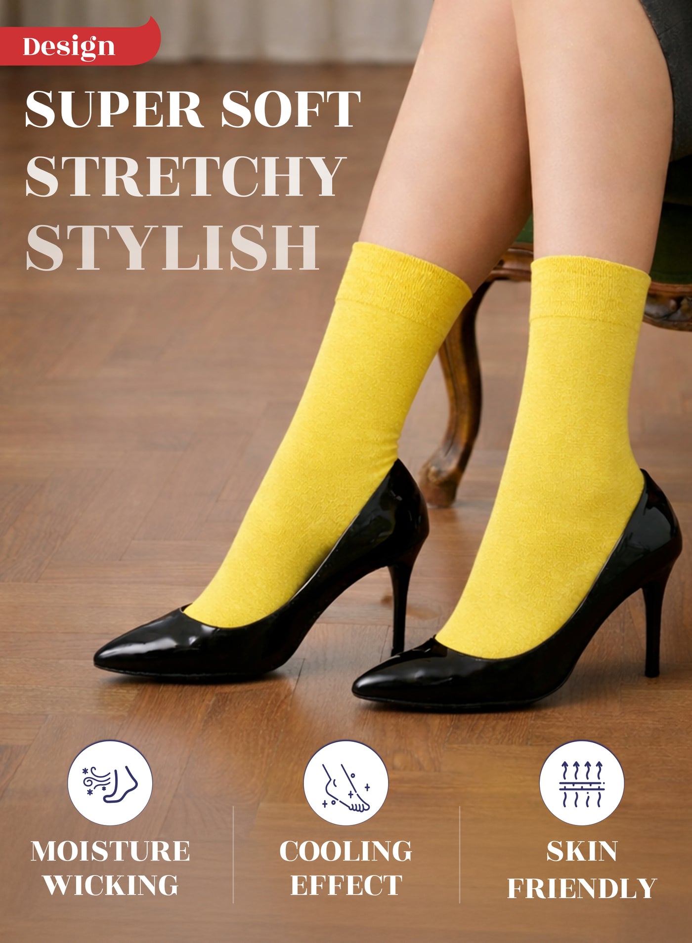 SUPER SOFT, BREATHABLE & COMFORTABLE DESIGN: Thanks to the bamboo, these thin ladies dress socks are extremely soft, breathable and has a cooling effect. They are elastic and have a great stretch. Their improved cuffs hold socks comfortably in place. Reinforced toes and heels make them extremely durable. Our business crew women dress socks have comfort seam toe that do not irritate your feet.