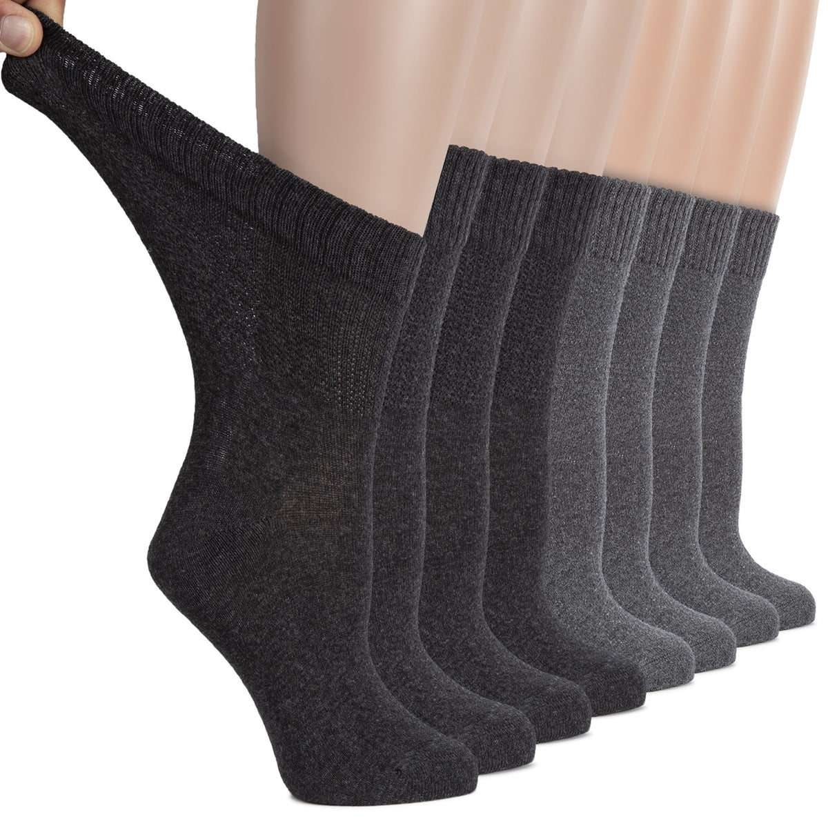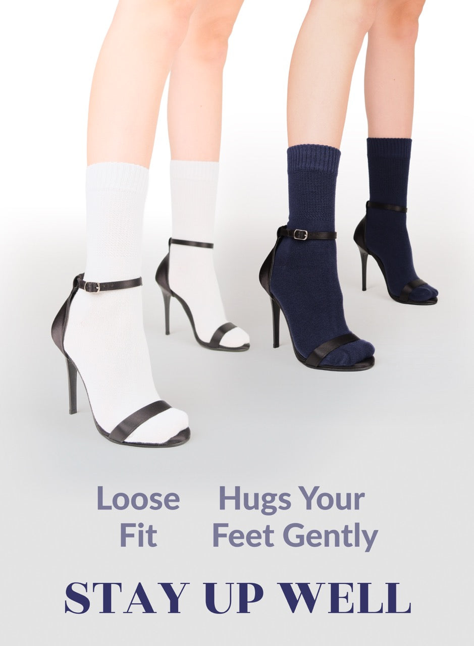 ENJOY SIZE and COLOR VARIETY: Our ladies' diabetic crew socks have solid colors. With a wide range of great color options such as Black, Navy Blue, Beige, White and Grey, there are 4 pairs in the package of socks. Our thin diabetic crew socks have two shoe size options that you can choose either 6-9 or 10-12. They are crafted with a cotton fabric that offers form-fitting compression, odor-resistant breathability, and moisture-wicking support you won't find in standard dress socks.