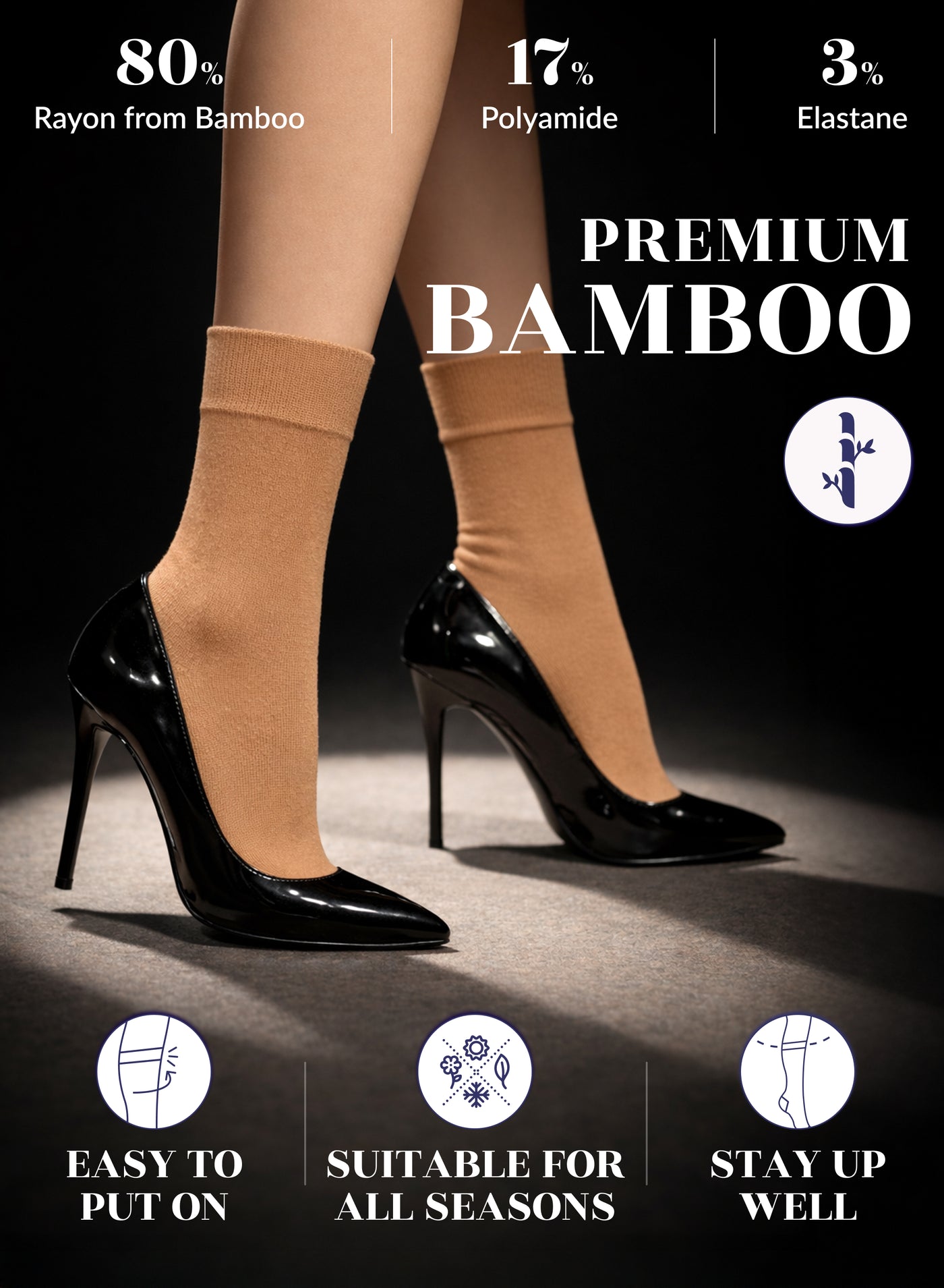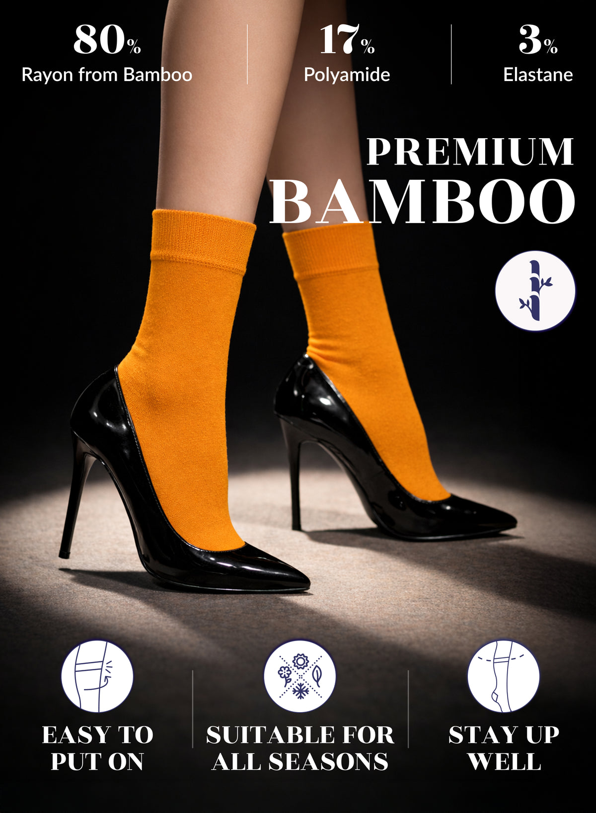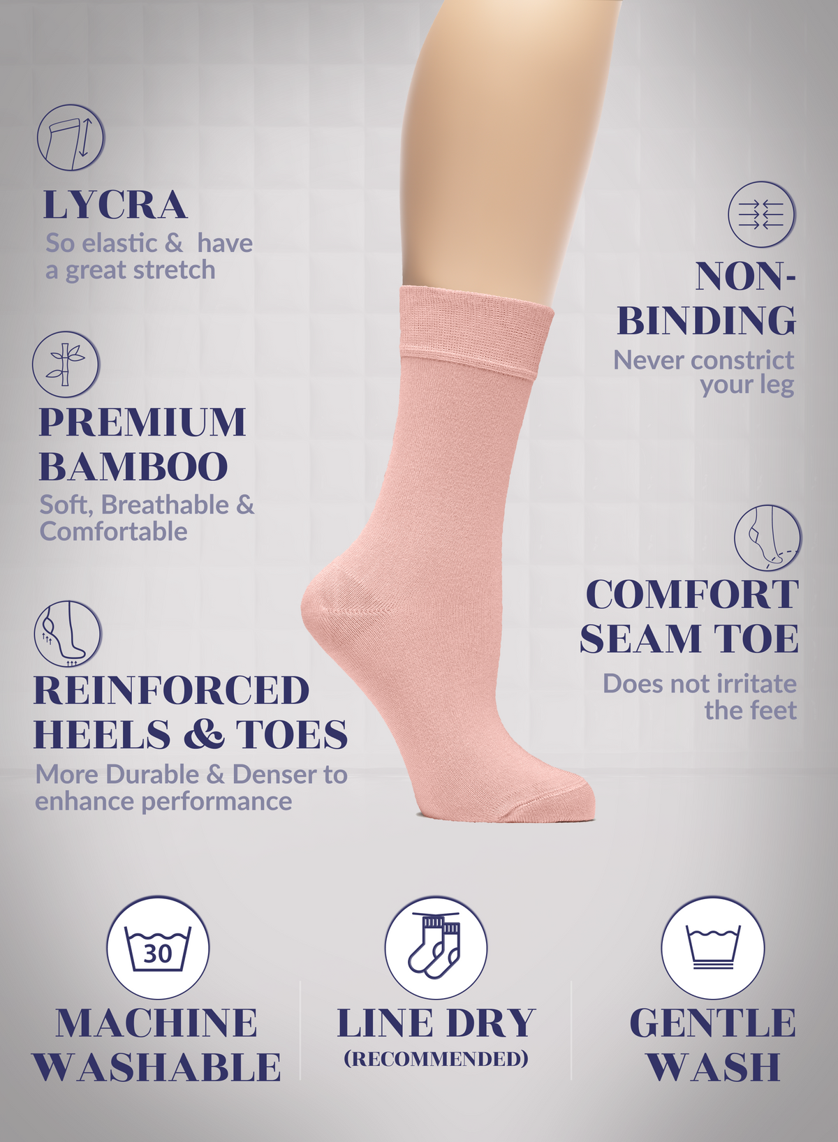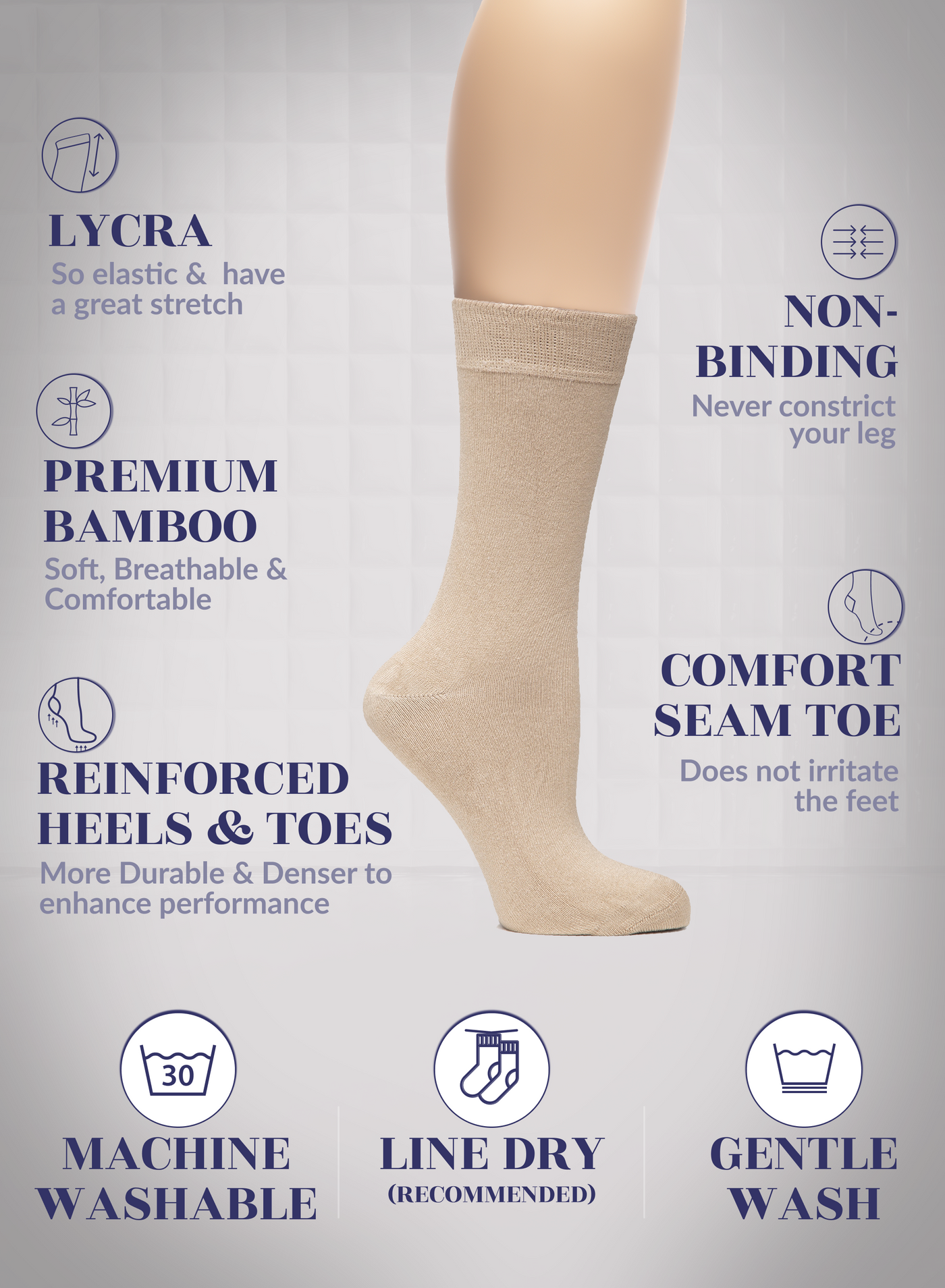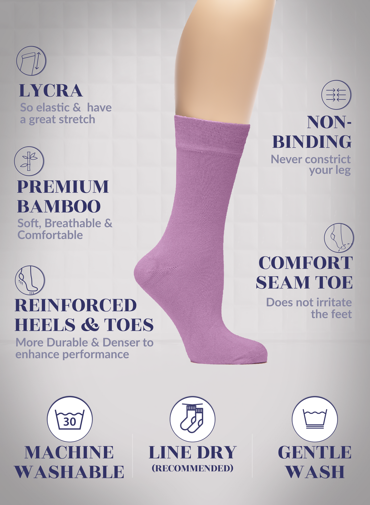 SUPER SOFT, BREATHABLE & COMFORTABLE DESIGN: Thanks to the bamboo, these thin ladies dress socks are extremely soft, breathable and has a cooling effect. They are elastic and have a great stretch. Their improved cuffs hold socks comfortably in place. Reinforced toes and heels make them extremely durable. Our business crew women dress socks have comfort seam toe that do not irritate your feet.